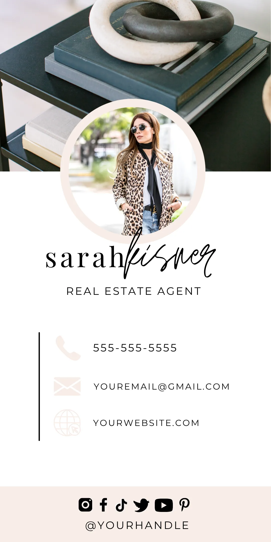 Choose your business card, click the 'customize' button to open the template into Canva. Edit with your information and brand colors. Save to your phone so you text your digital card to contacts.